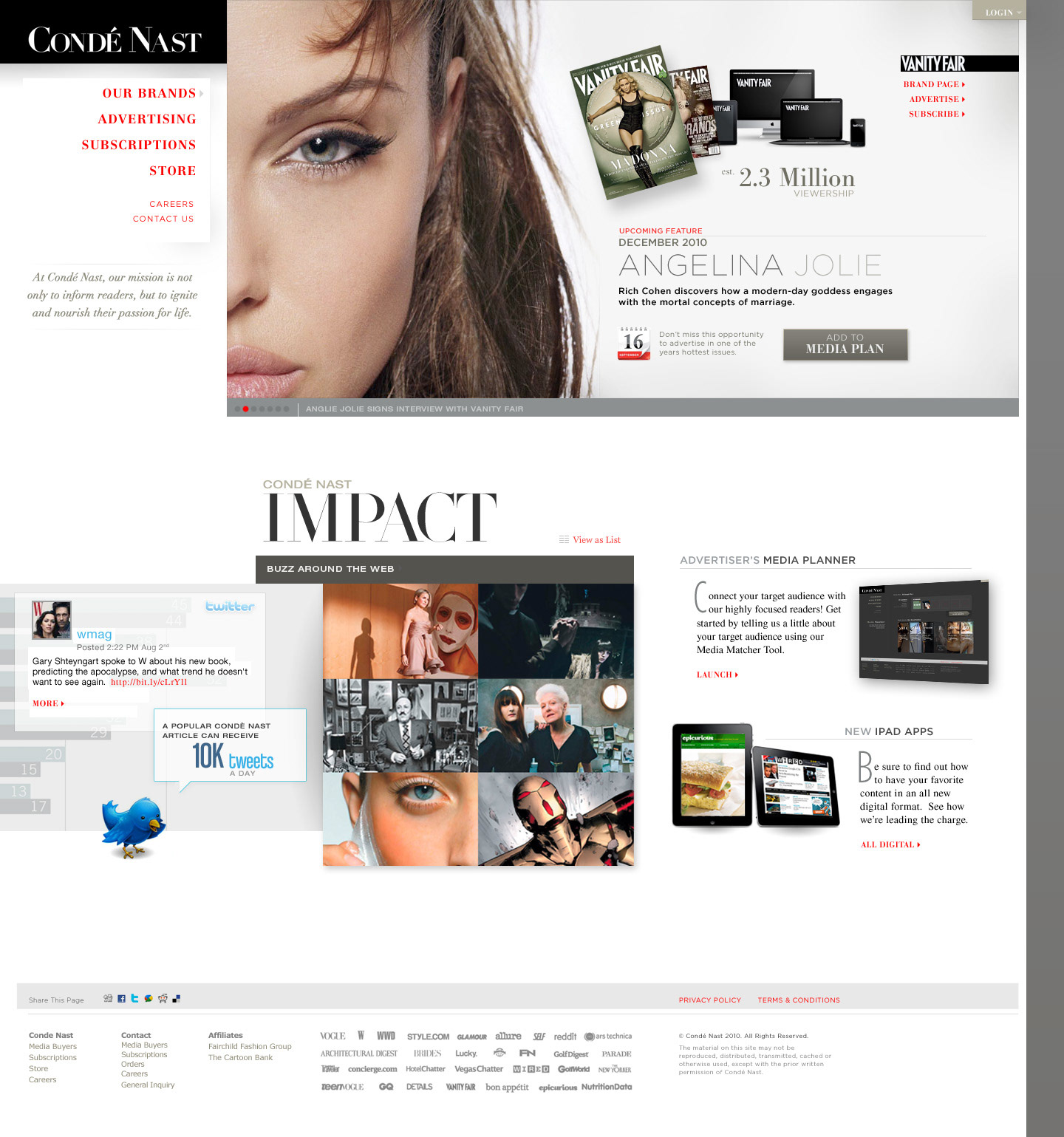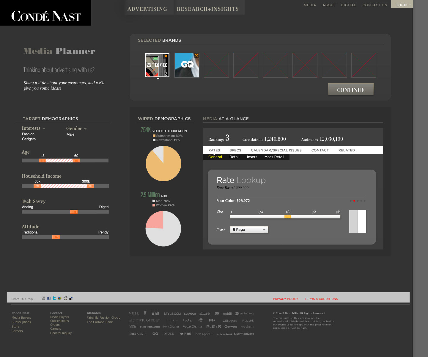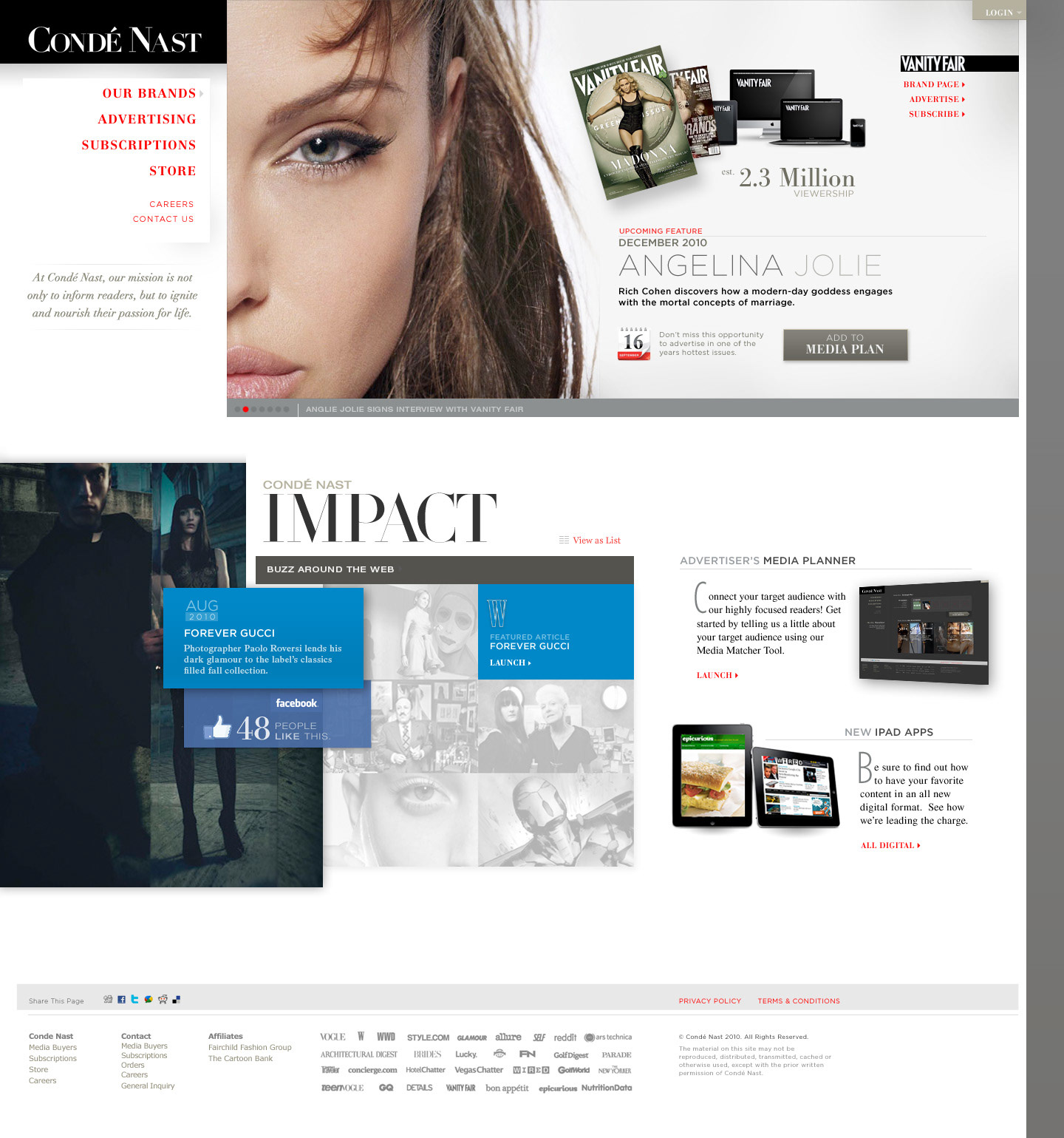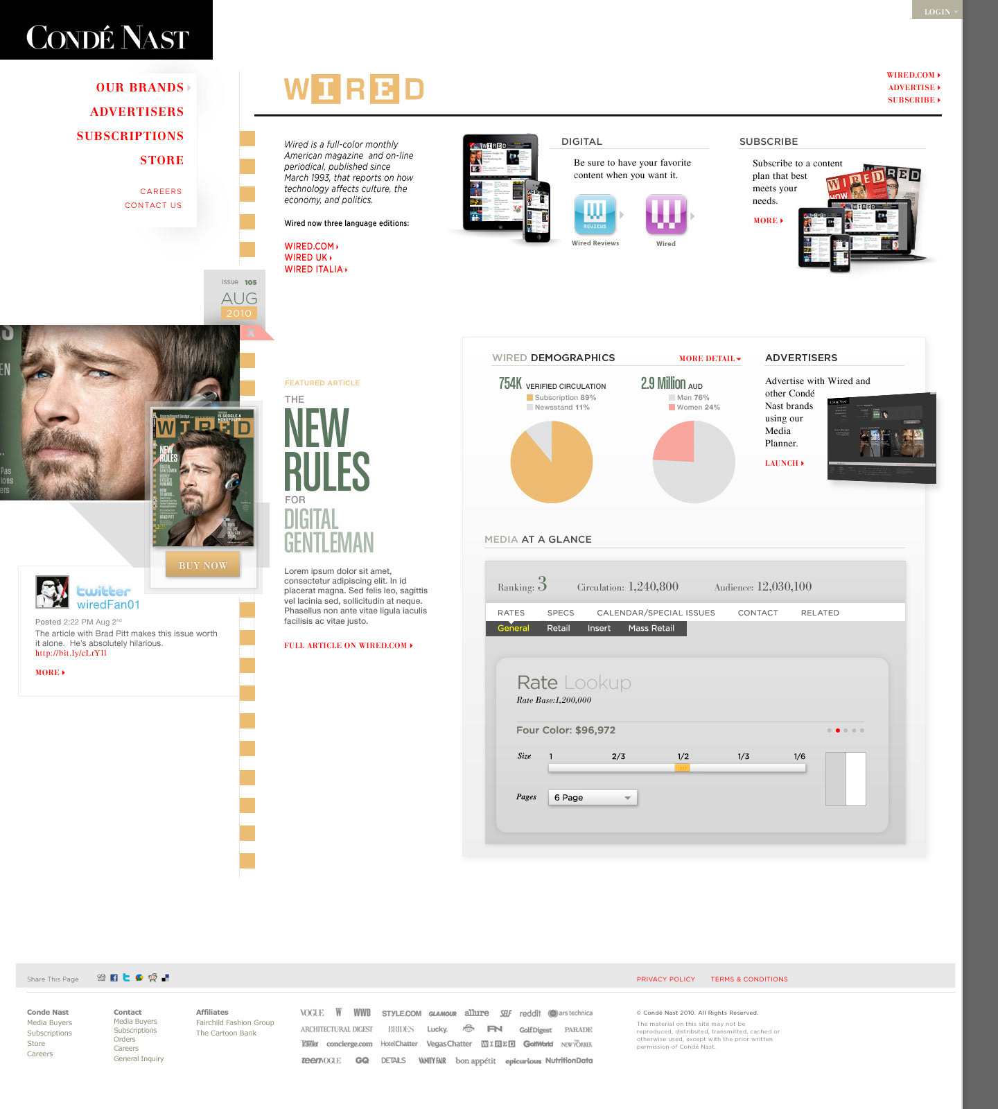 We had the opportunity to talk with Conde Nast about updating their digital presence. The following comps walk through various social and application based Web tools for both consumers and media buyers.