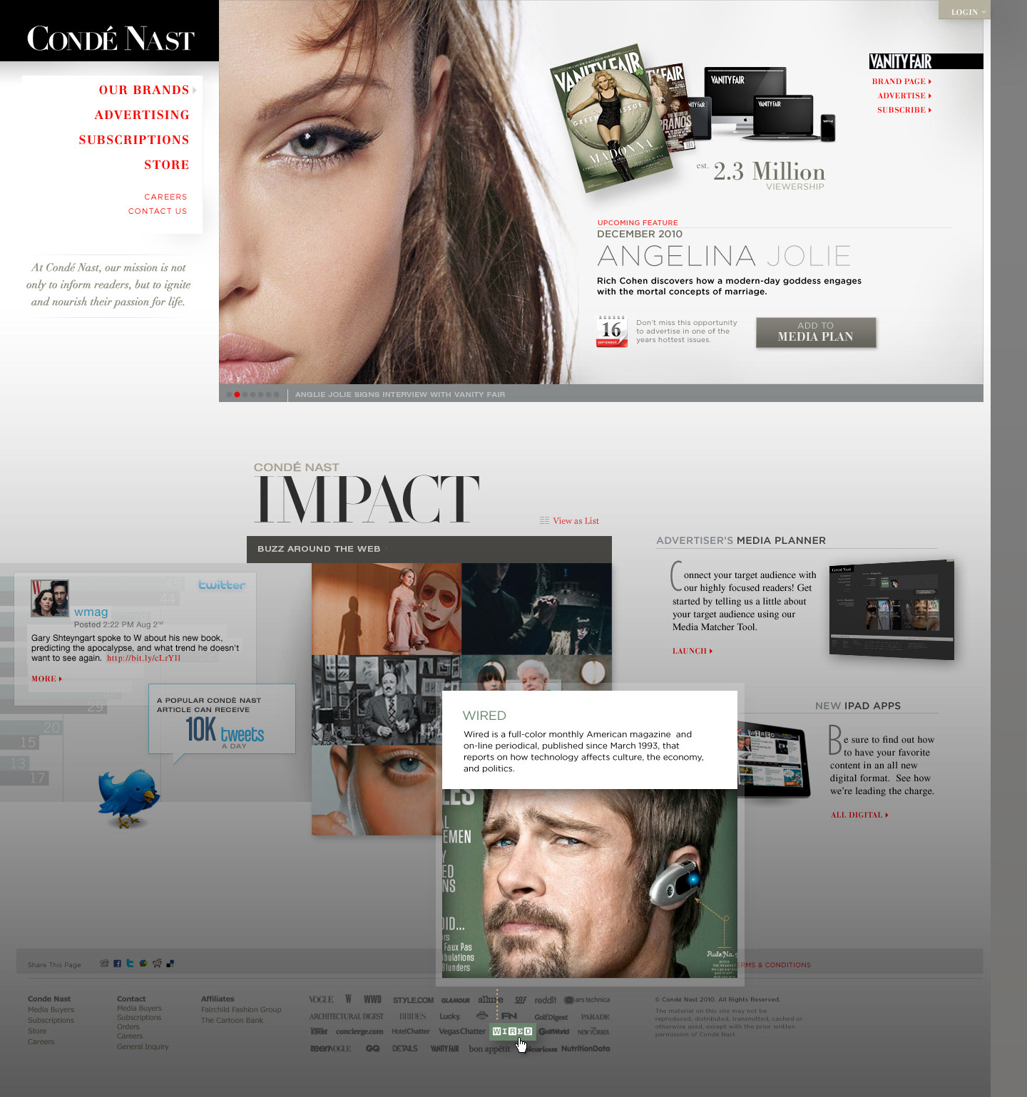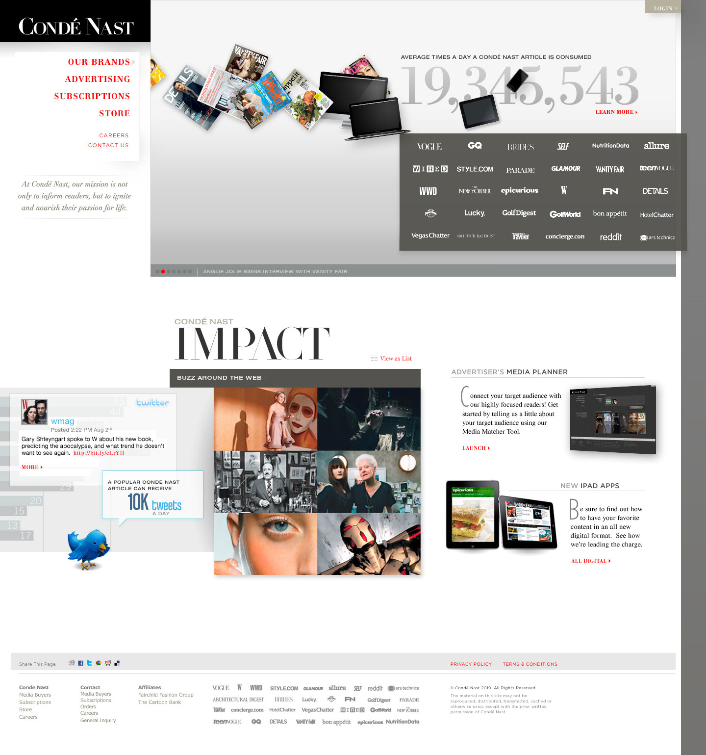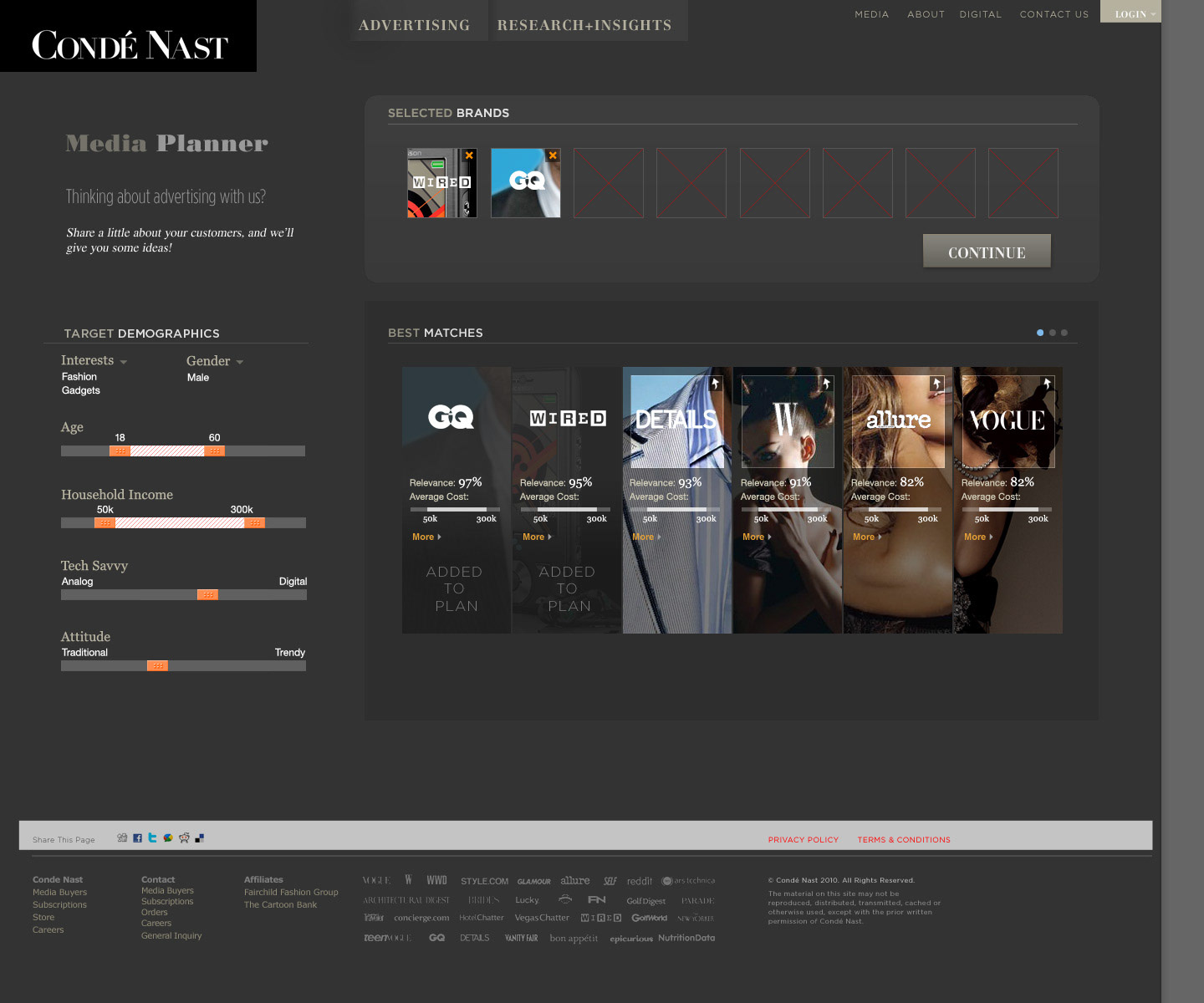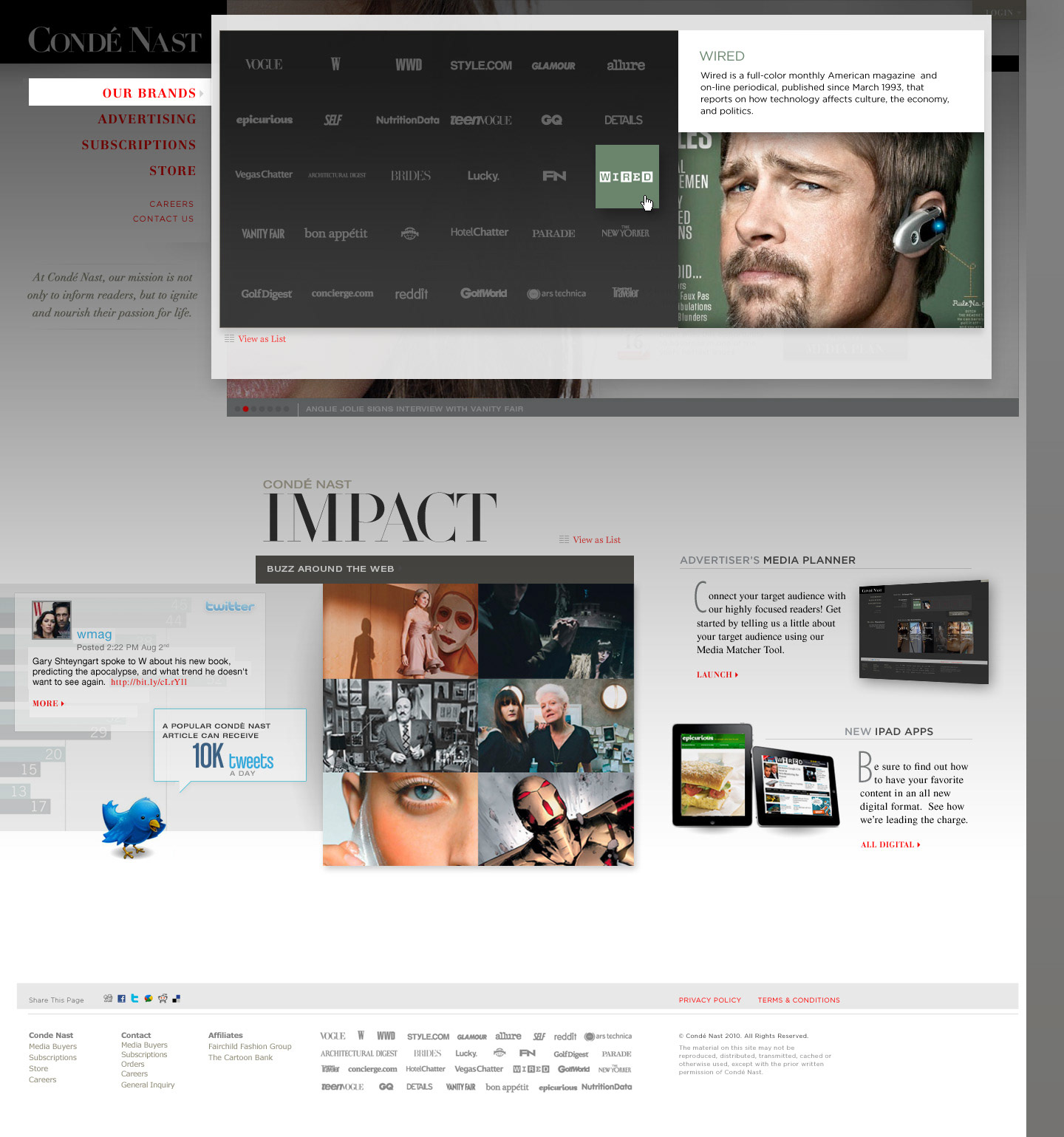 We had the opportunity to talk with Conde Nast about updating their digital presence. The following comps walk through various social and application based Web tools for both consumers and media buyers.